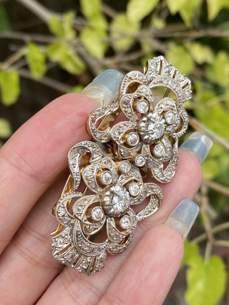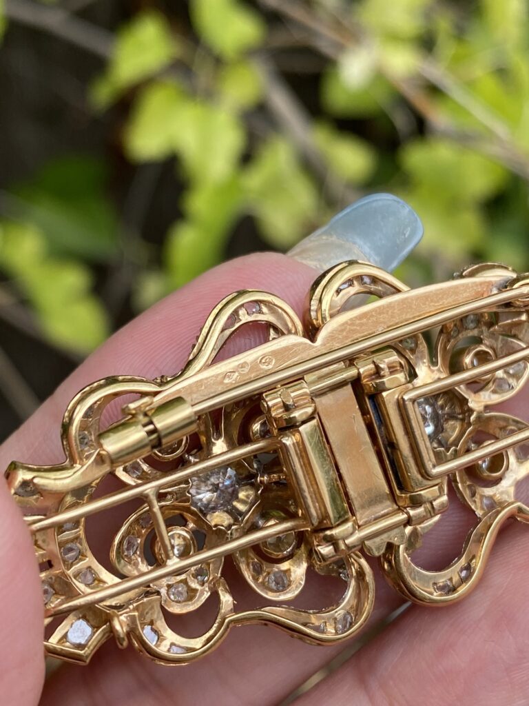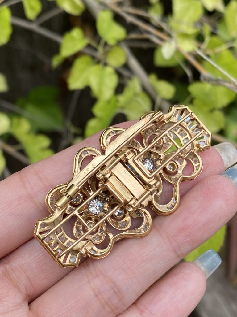 / Broche Art Deco en oro 18K con diamantes – Doble clip transformable, una joya histórica