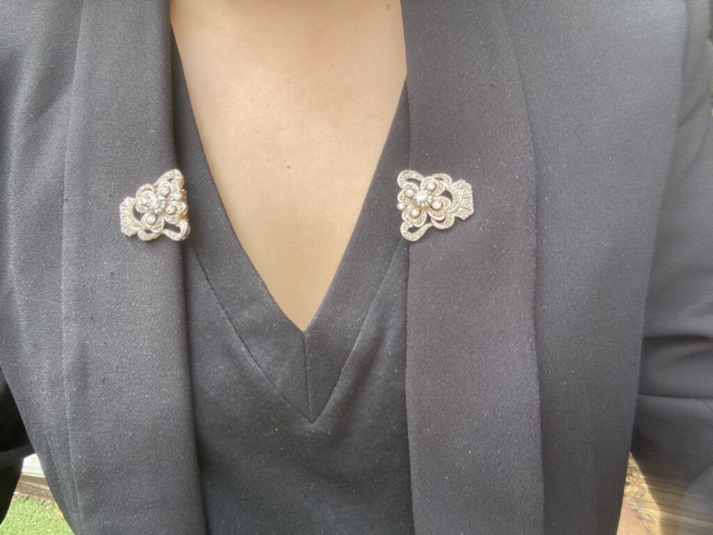 broche doble clip con diamantes