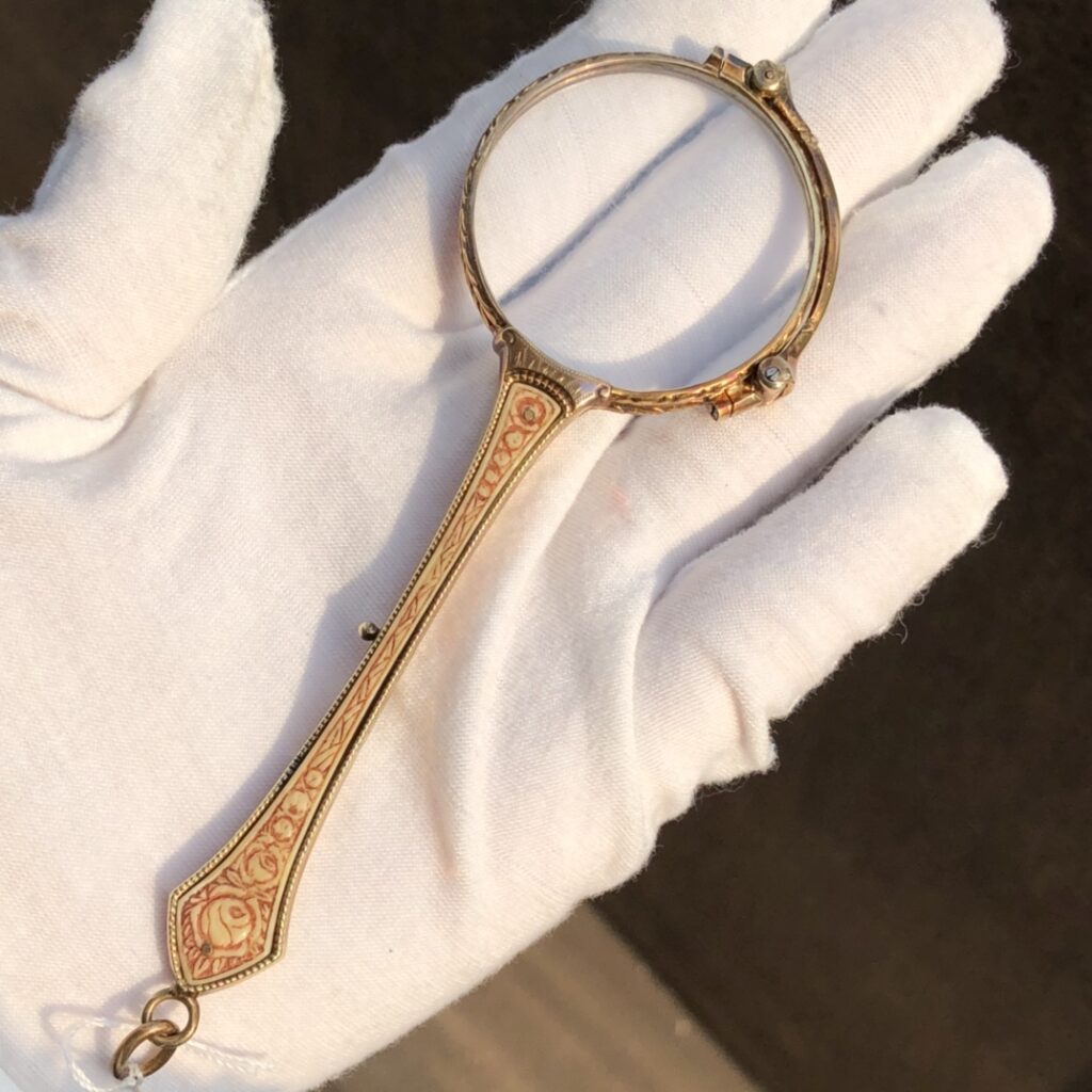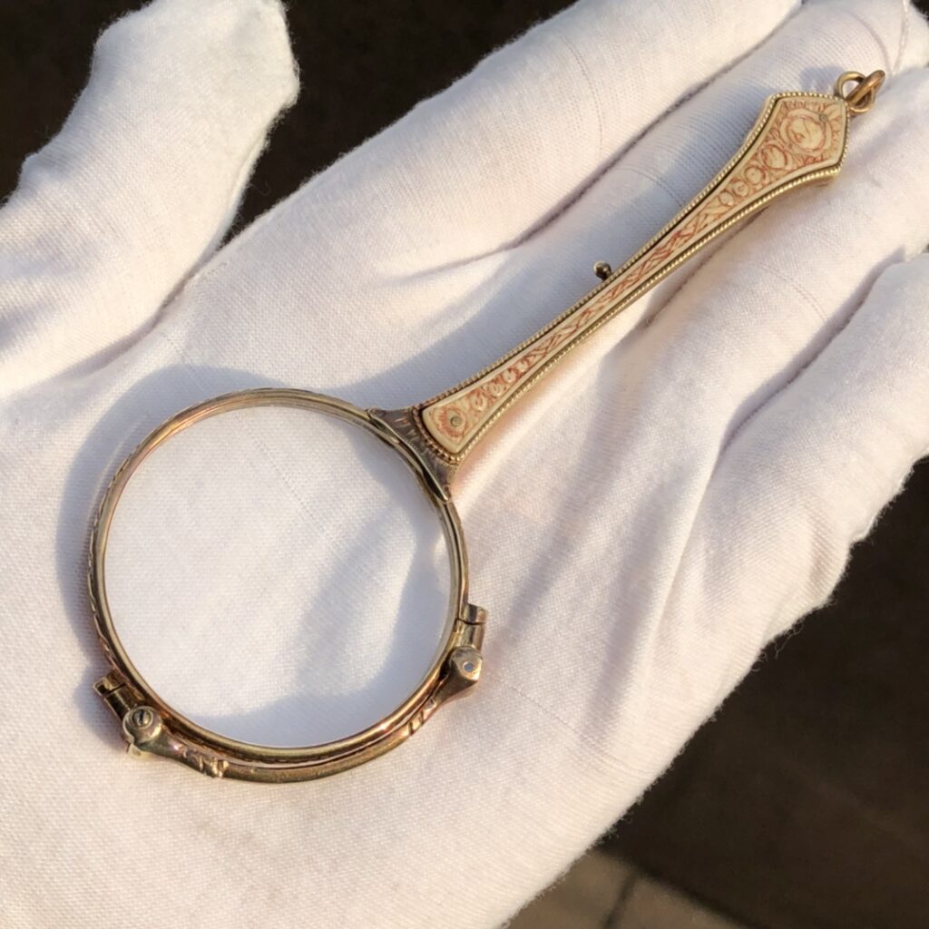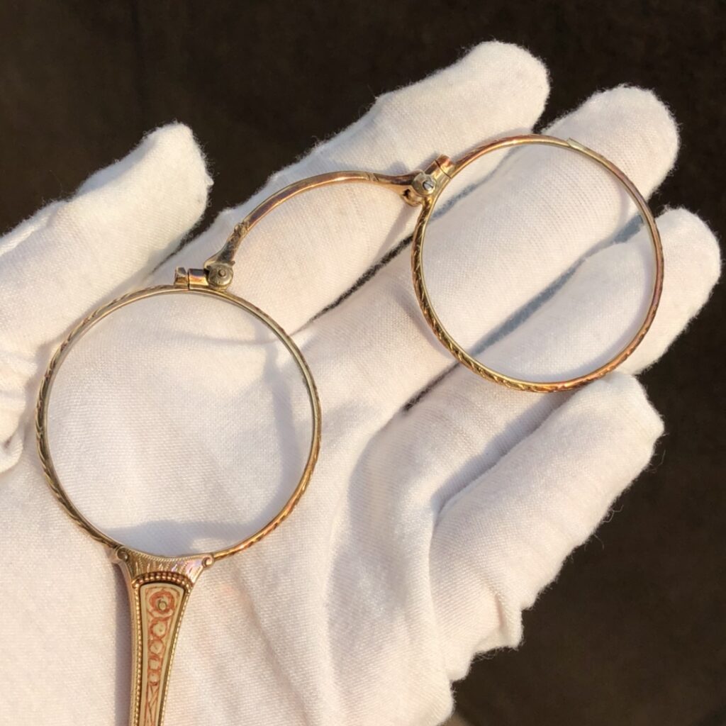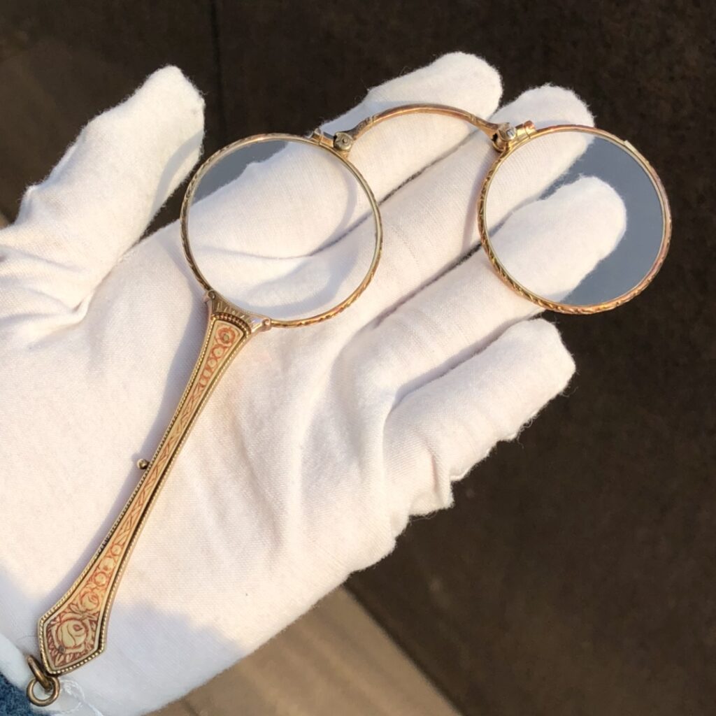 旧的14k实心金带花釉折叠镜片- 19世纪