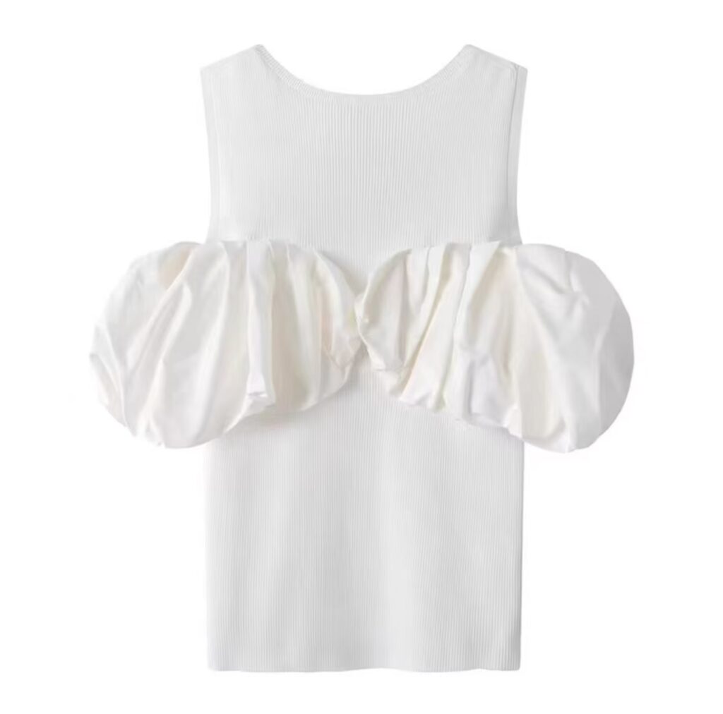 Blusa Blanca con Detalles de Manga Abullonada quantity