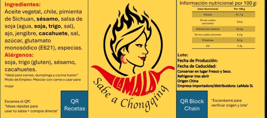 LaMALA es la auténtica salsa mala de Chongqing con picante medio, sabor profundo y un toque de pimienta de Sichuan. Ideal para dumplings, carnes, noodles, cachapas y cocina fusión. Lista para usar y enamorar desde la primera cucharada.